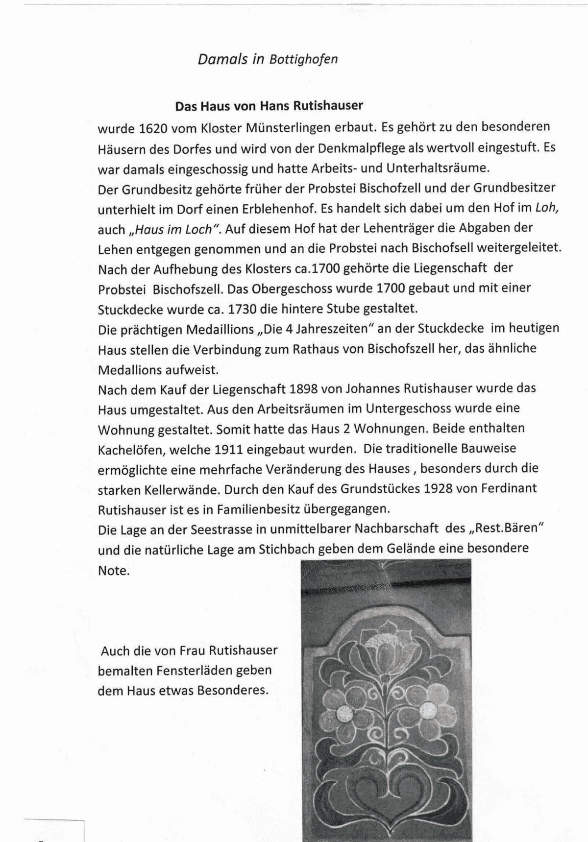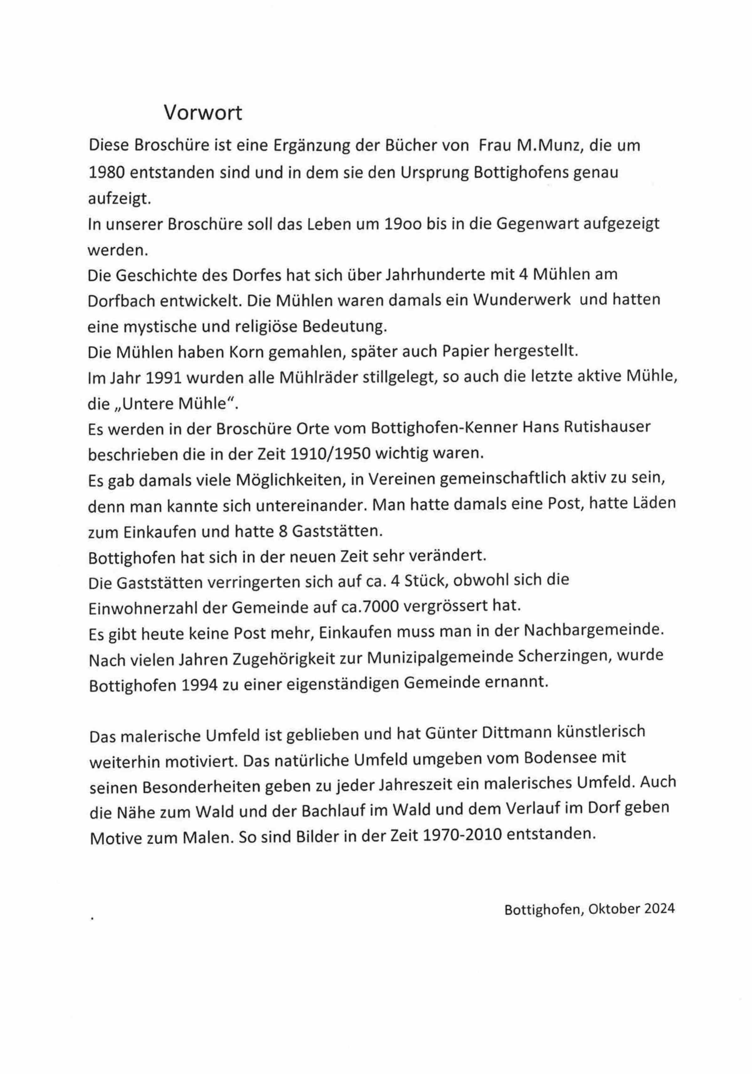 Günter Dittmann war Architekt und hat an mehreren Gebäuden in Bottighofen mitgewirkt. Als Künstler wurde er durch das malerische Umfeld von Bottighofen inspiriert und schuf zahlreiche Bilder, die die Entwicklung und Veränderungen des Dorfes festhalten. Schon seit seiner Kindheit war er stets mit dem Zeichenblock unterwegs weiterhin großem Durchhaltevermögen künstlerisch aktiv.